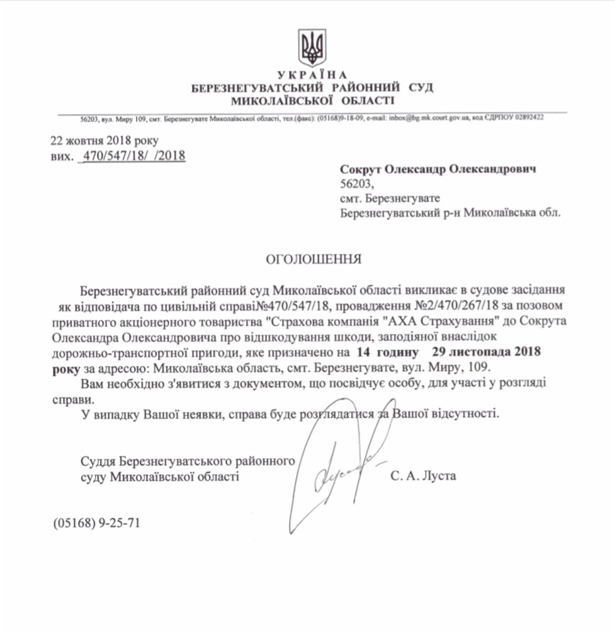 Оголошення про виклик до суду Сокрут Олександра Олександровича по цивільній справі №470/547/18